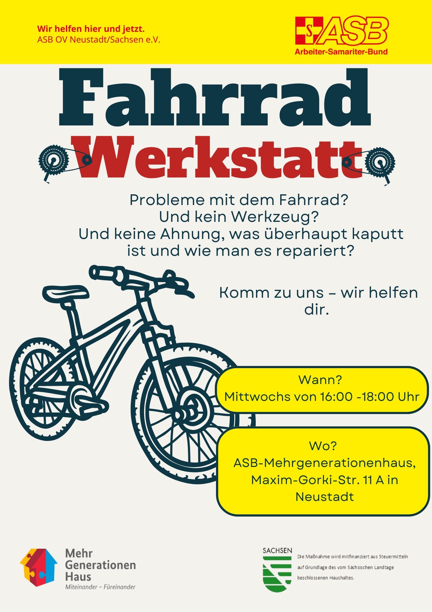 In unserer Fahrradwerkstatt geht es jetzt richtig los. Das erste Fahrrad konnte erfolgreich repariert und wieder verkehrstüchtig gemacht werden. Schritt für Schritt werden gespendete Räder aufbereitet, um sie anschließend an bedürftige Menschen weiterzugeben. Gleichzeitig ist die Werkstatt ein Ort des gemeinsamen Tuns. Interessierte können mit ihren eigenen Fahrrädern vorbeikommen und diese vor Ort selbst reparieren oder aufbauen. Unsere ehrenamtlichen Helferinnen und Helfer stehen dabei unterstützend zur Seite, geben Tipps und helfen bei der Umsetzung. Auch kleinere Ersatzteile stellen wir gegen eine kleine Spende zur Verfügung. Wer ein Fahrrad spenden möchte oder Unterstützung benötigt, ist herzlich willkommen gemeinsam bringen wir mehr Räder wieder ins Rollen. |