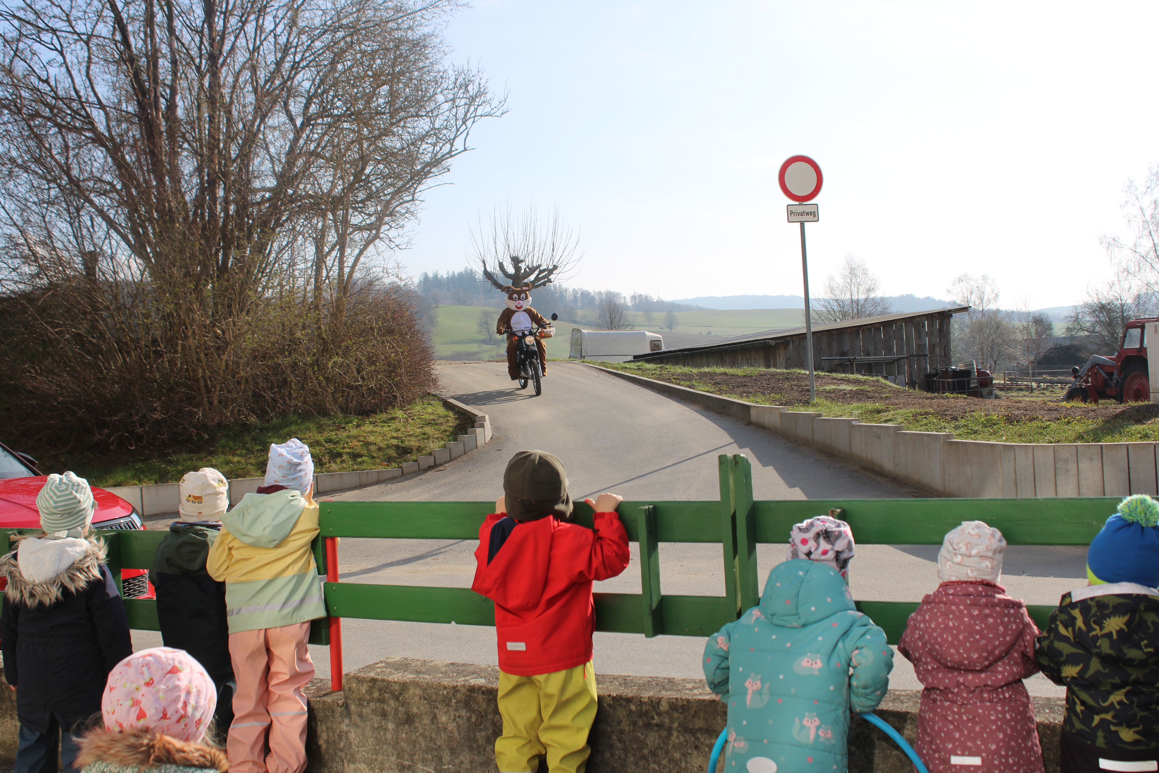 Oh, Osterhase, ach wie fein, kommst du zu den Kita-Kindern hinein. Ins Traumzauberland, so bunt und klar, bist du plötzlich wieder da. Du kommst nicht nur gehoppelt an, nein mit dem Moped welch ein Plan. So flitzt du schnell von Ort zu Ort und bringst uns Freude immerfort. Du versteckst für Groß und Klein etwas Süßes, ach wie fein. Mit viel Liebe, das ist klar, jedes Jahr aufs Neue da. Dafür danken wir dir sehr, freuen uns schon jetzt auf mehr. Vielen lieben Dank an dich, du machst uns alle glücklich. Bis bald, wir warten schon ganz gespannt die kleinen und großen Kita-Kinder aus dem Traumzauberland. |